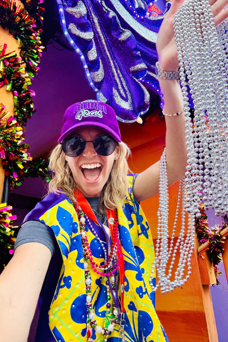 The team walks you through everything before boarding your float. From there, you will roll through the parade route tossing beads to the energetic crowds below. It’s organized, energetic and incredibly well done. Instead of just watching the celebration, you are fully a part of it. Whether you’re a couple, a family or a larger group- the team guides you to feel comfortable and ready to have the time of your life!